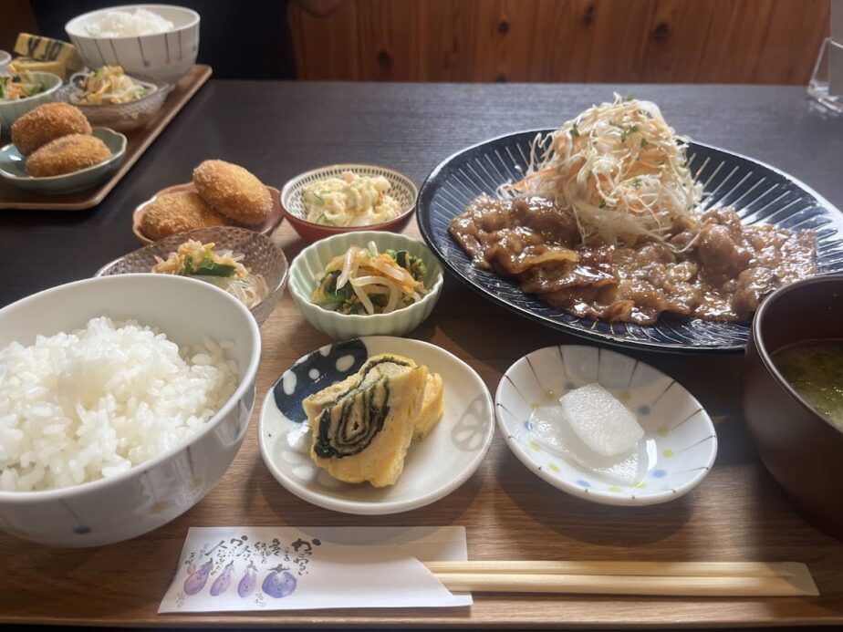 おぼんいっぱいにしょうが焼きから小鉢がたくさん😮