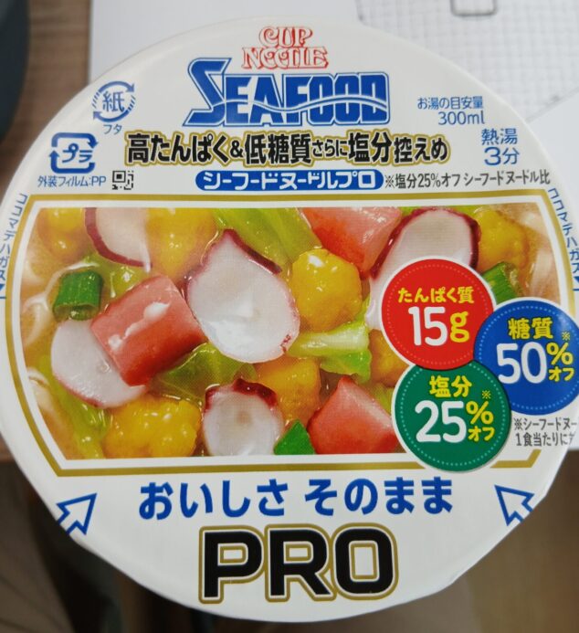 健康に気をつかって本日のお昼ご飯はカップヌードルプロをいただきました。
