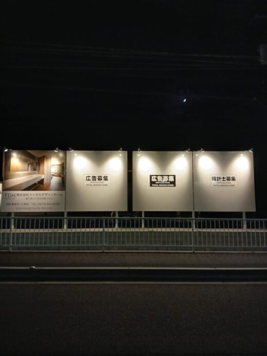 ちなみに道路面に設置してます広告看板はこんな感じにライトアップされています。