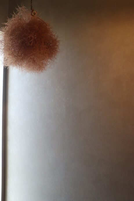 なんとこちらは奥様が庭で育てたスモークツリーをアレンジしたものだそうです😳