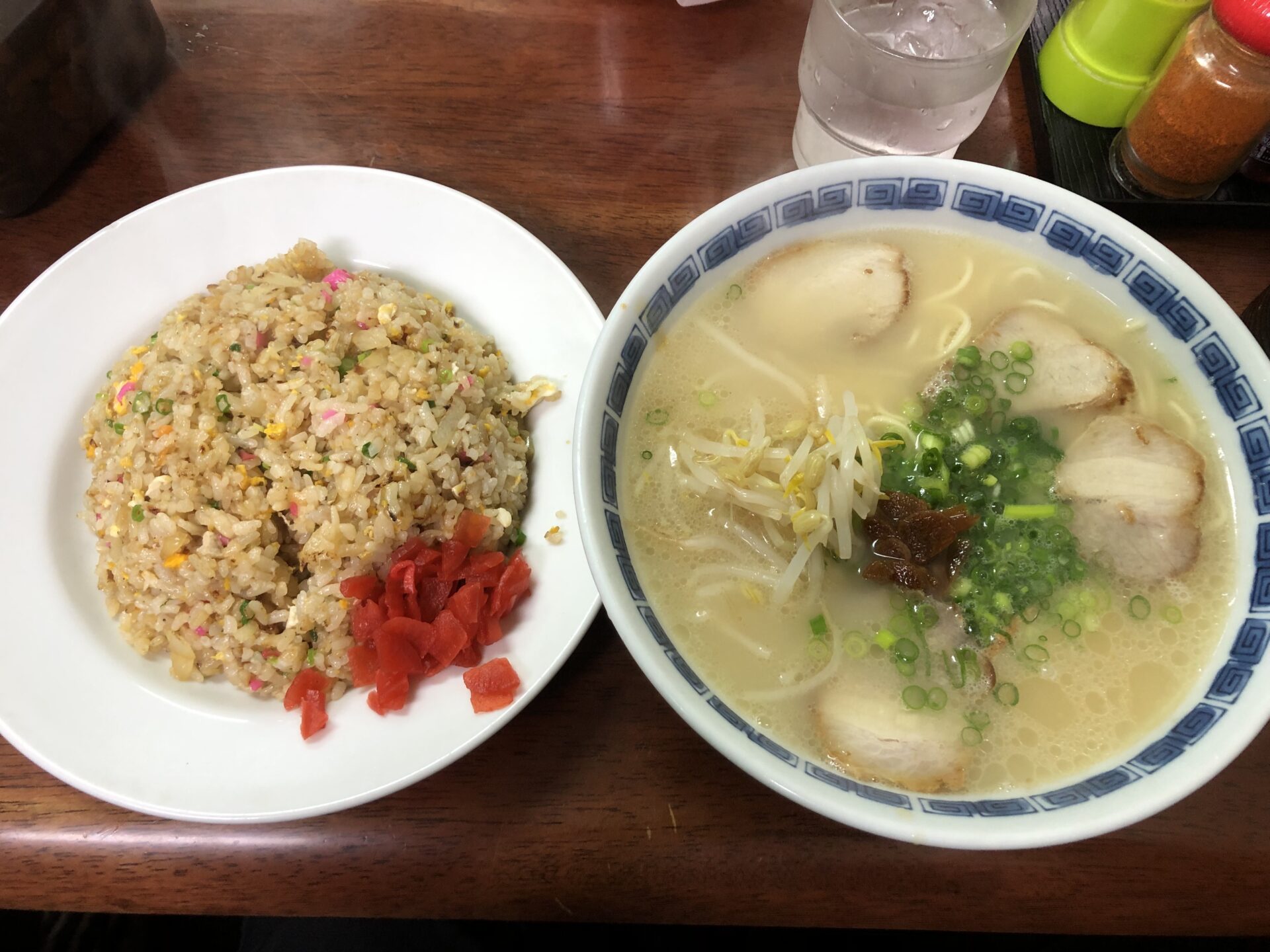 小倉で一番おいしい炒飯と評判の月天さんでラーメン炒飯セットを頂きました。