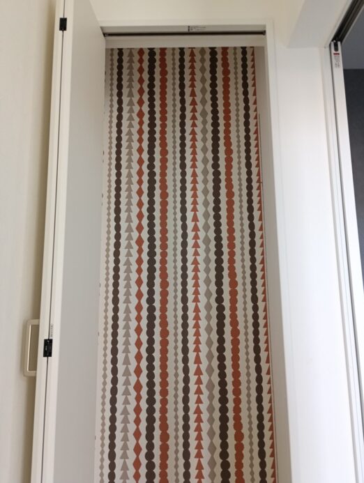 続いて収納スペースの背面にはサルミアッキ柄のアクセントです