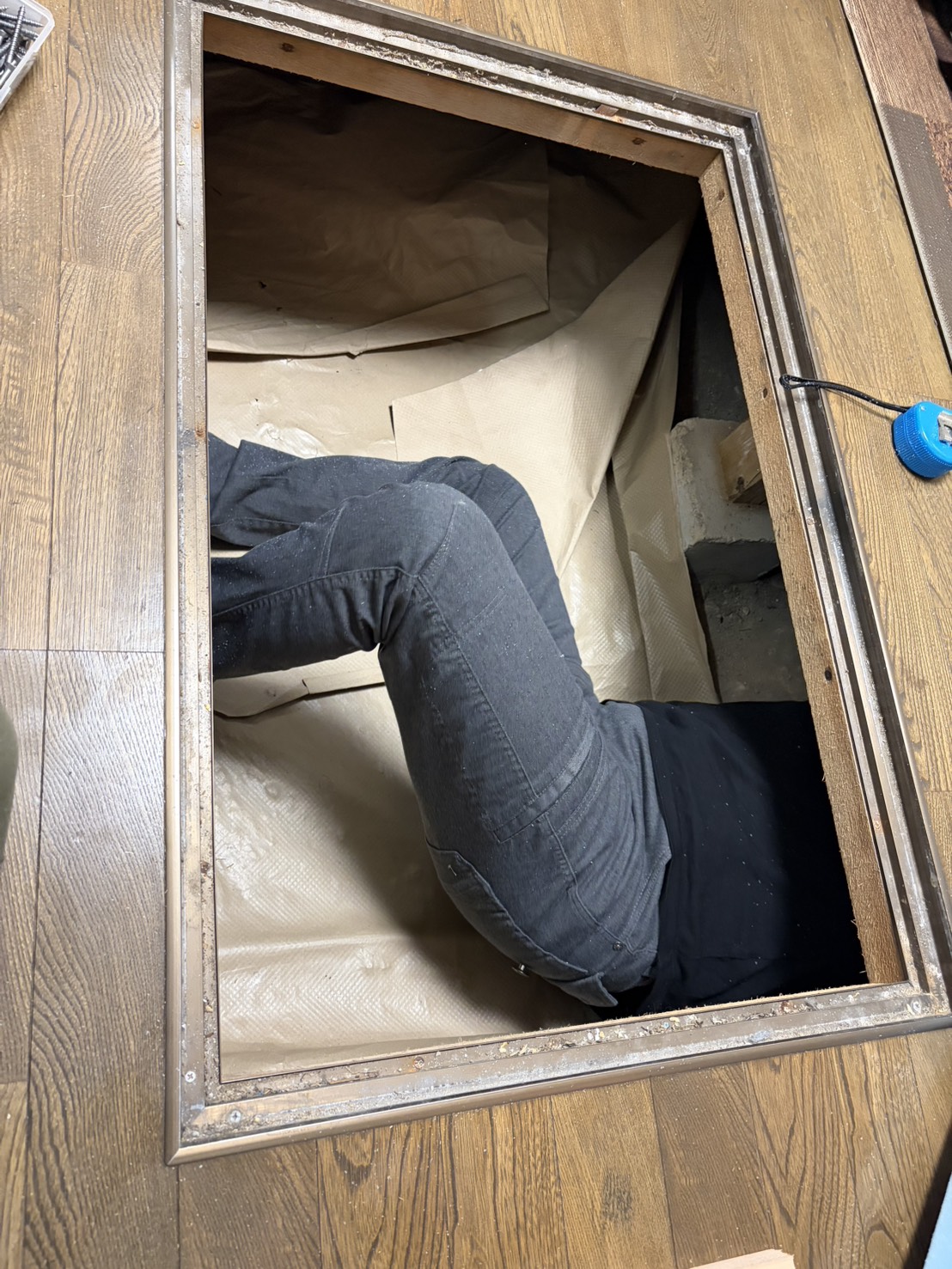 「このまま出てこれんくなったら後のことは任せた」と言い残し床下に潜っていく社長。