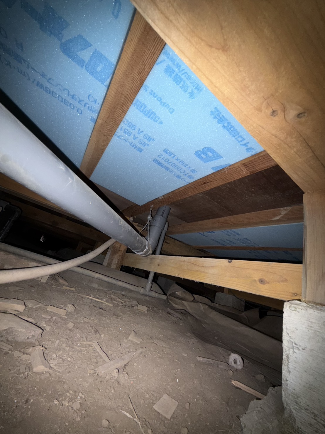 昨日H様邸のリフォーム工事にて、床下に潜って断熱材を入れ込みました。